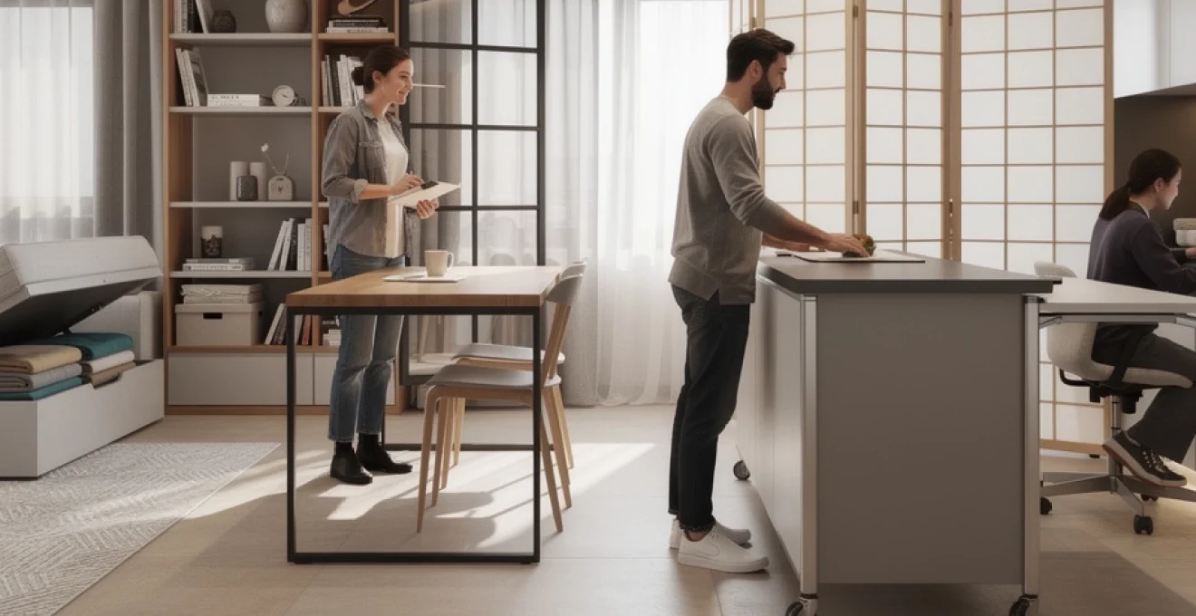 Les meubles multifonctionnels et les systèmes de rangement intégrés prennent ici toute leur importance. Ils transforment un simple salon en pièce de vie ultra-optimisée, capable d’accueillir un bureau, un couchage d’appoint, une bibliothèque et un coin repas sans donner l’impression d’un espace saturé. Vous vous demandez par où commencer ? Concentrez vos investissements sur trois pôles : le canapé, la cuisine et les rangements modulaires.