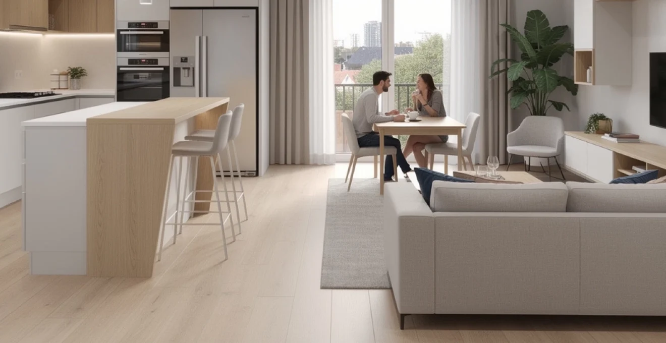 Une surface de 35m2 offre la liberté d’explorer plusieurs configurations de cuisine ouverte. Chaque implantation (en L, en U, parallèle ou linéaire) répond à des besoins spécifiques en termes de rangement, de circulation et de style de vie. Le choix dépendra de la forme de la pièce (carrée, rectangulaire, traversante) mais aussi de la position des murs porteurs, des arrivées d’eau et des évacuations. Bien choisir la configuration de votre salon cuisine 35m2 plan, c’est un peu comme tracer le plan de circulation d’un petit appartement : chaque centimètre compte et doit être justifié.